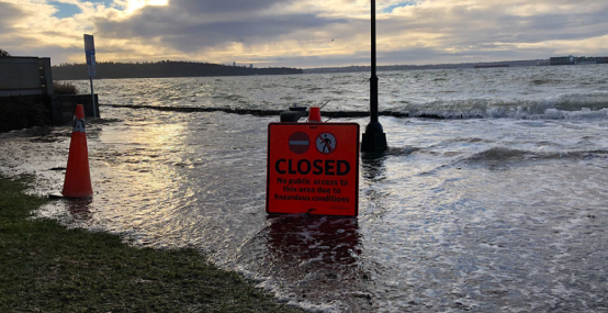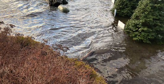 (水獭窜上岸 图自Daily Hive)海峡南岸的温哥华情况也没好到哪儿去:基斯兰奴(Kitsilano)海滩公园里大部分人行道都泡在了水下。