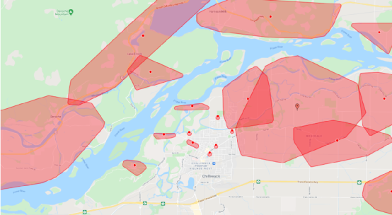 (红色的都是停电区 图自BC Hydro)除了奇利瓦克之外,1月7日大温地区的素里、列治文和温哥华也出现了大面积的停电。特别是温哥华市中心西区,有近2500人没有电用,只能大风天里哆嗦着取暖。