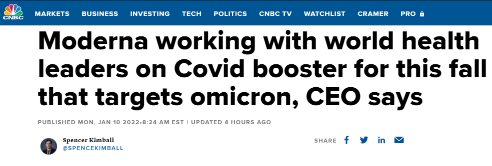 Bancel 表示,“我们在与世界各地的公卫领导人讨论,以确定在 2022 年秋季推出加强剂的最佳策略。我们相信它将能控制 Omicron。”