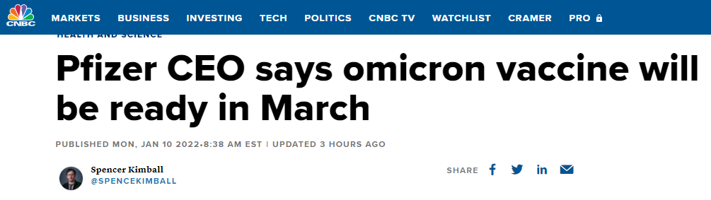 Bourla (辉瑞CEO)上个月也表示,人们可能需要接种第四剂疫苗,并且接种第四剂疫苗的时间可能比预期的要更早。