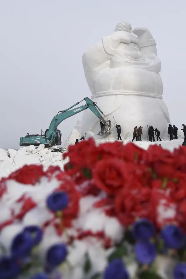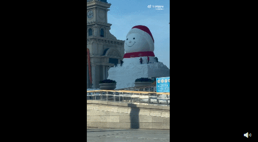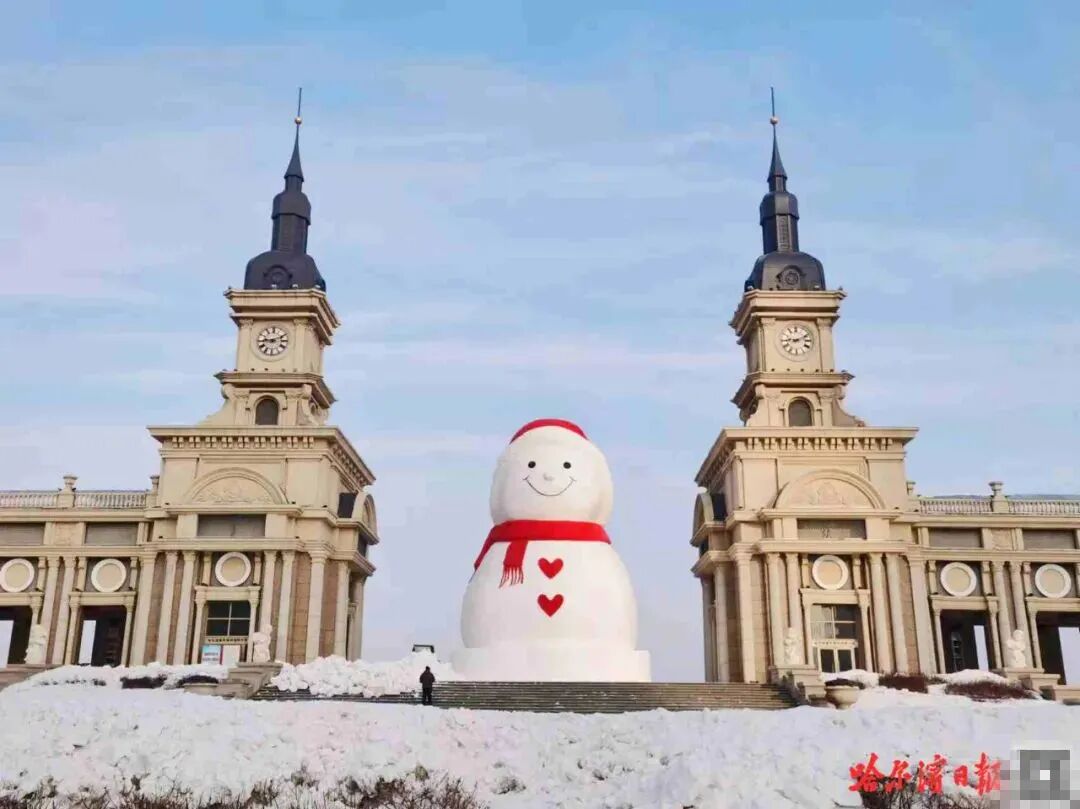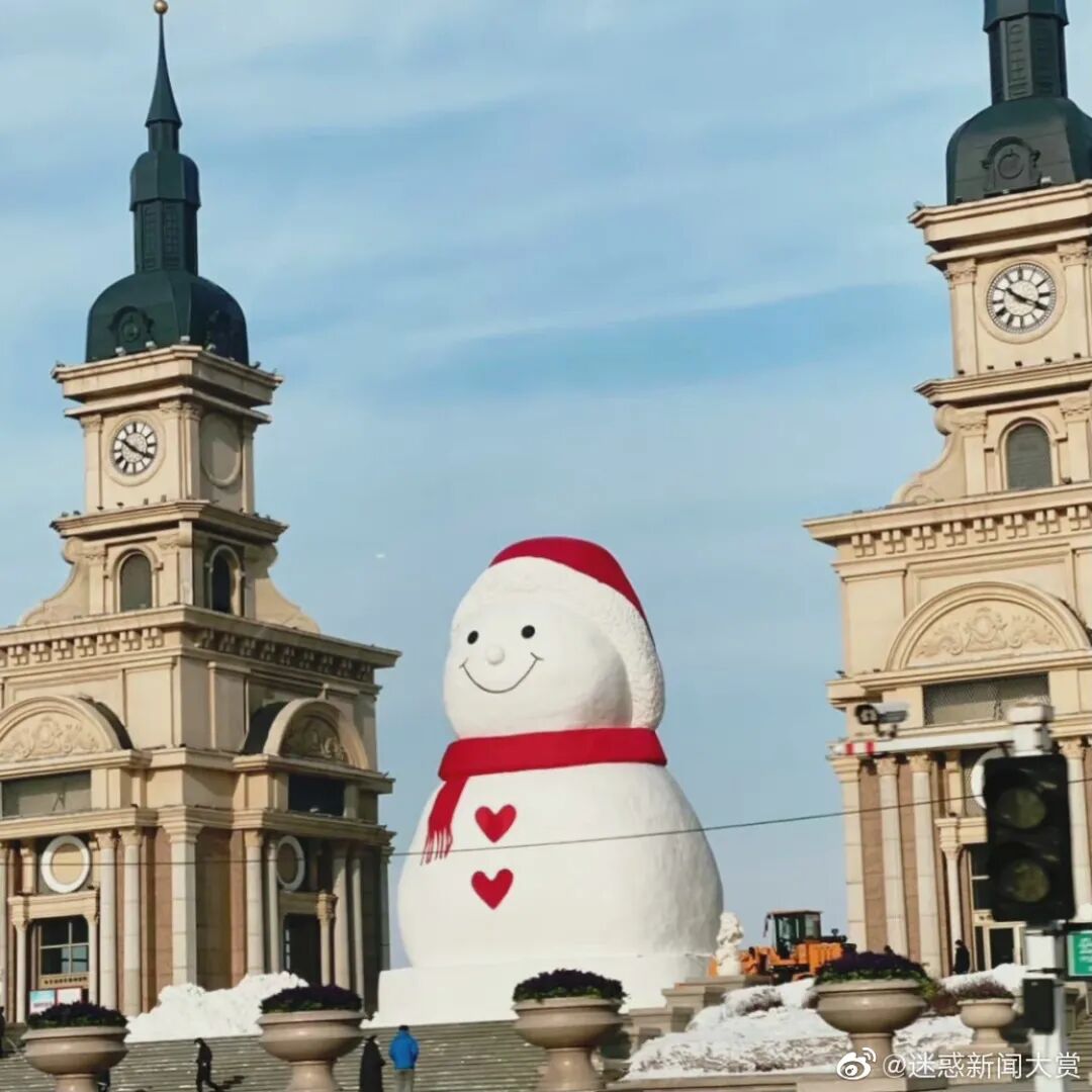 哈尔滨道里区园林局项目服务中心主任张凯介绍称,这座矗立在友谊西路与景江东路交会处的大雪人高达18.5米,宽13米,厚度约9米,用雪量2000余立方米,寓意着可爱祥和、喜庆丰收,每天约有3000人前来和大雪人合影打卡,已成为松花江畔今冬的新地标。