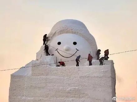据哈尔滨新闻网报道,这一雪人制作共历时10天,于1月7日在哈尔滨道里区友谊西路群力音乐公园内完工,期间120位雕刻师齐上阵。