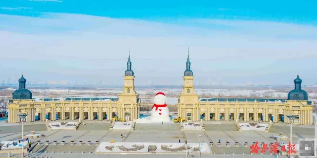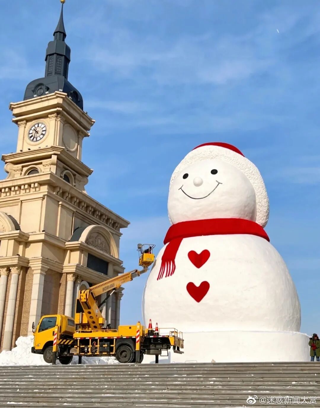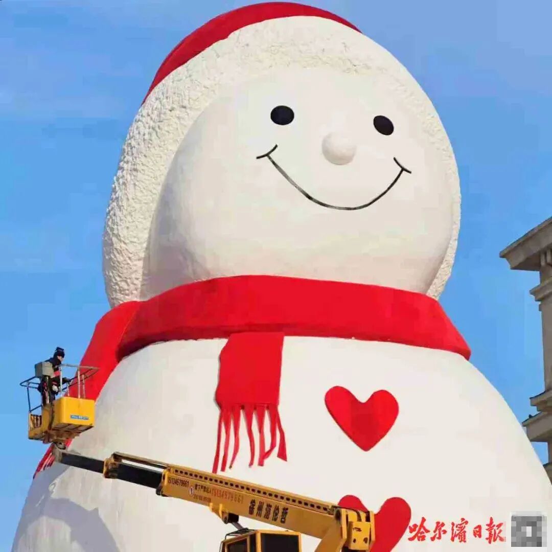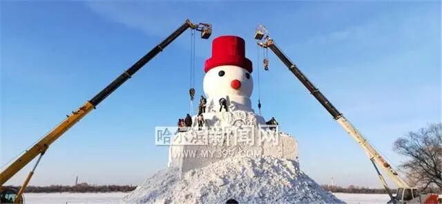 2018年12月,哈尔滨还立起过一个20.19米的雪人,帽子为雪人增高不少。