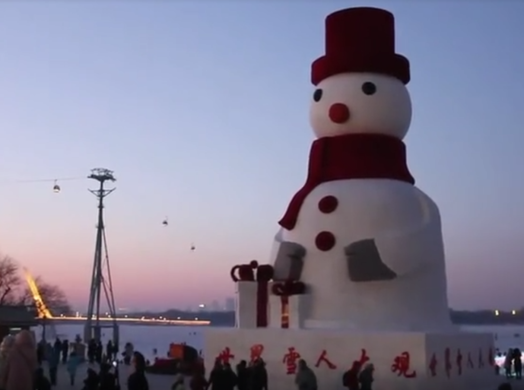 2019年年底,哈尔滨在市区内的松花江两岸堆砌雕塑了2020个雪人,以此迎接2020年,其中也有一个大型雪人。
