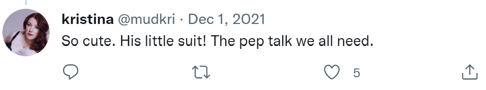 太可爱了,他的小西装!我们都需要鼓舞士气的话。