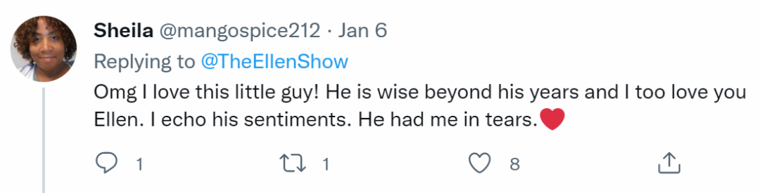 我爱死这个小家伙了!他的智慧超过了他的年龄……我赞同他的观点,他让我泪流满面。
