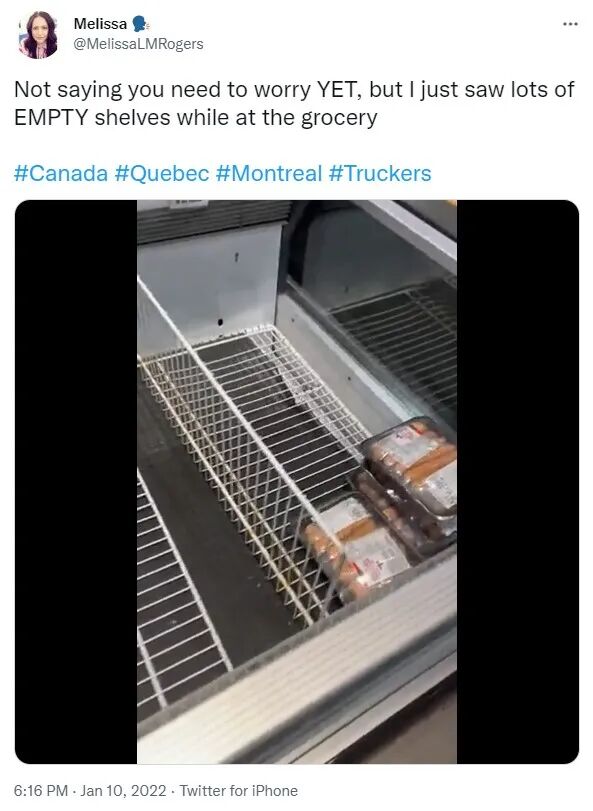 但我刚刚确实在超市看到了很多空货架。”