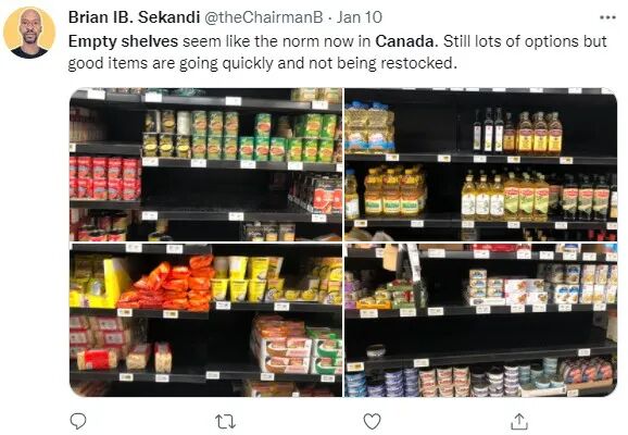 “空空如也的货架似乎成了加拿大的常态,