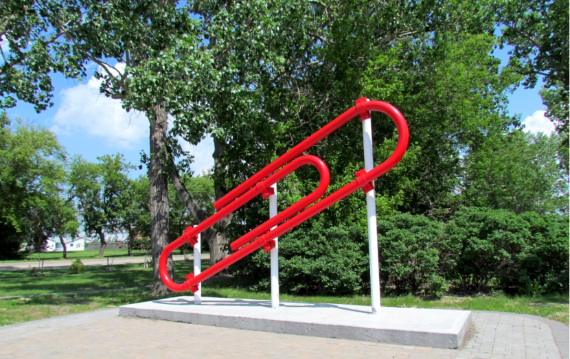 他们还在镇中心竖起了一个巨大的红色曲别针雕塑,来纪念Kyle的这次物物交换,并成为“世界上最大的区别针”。