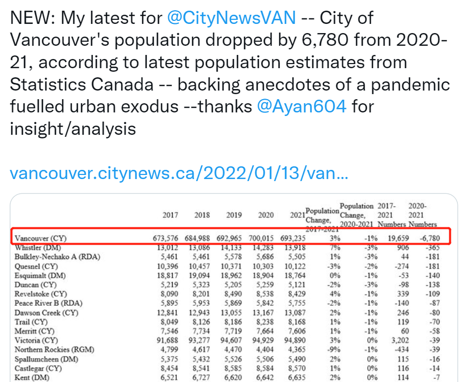 SFU大学城市项目主任Andy Yan表示,“这绝对是温哥华的一个异常现象,因为自上世纪80年代中期以来,温哥华的人口几乎一直在增长。”但这主要的原因也是因为疫情期间国际移民暂时减少以及很多人回不来。