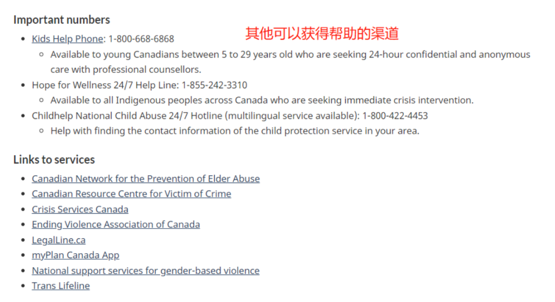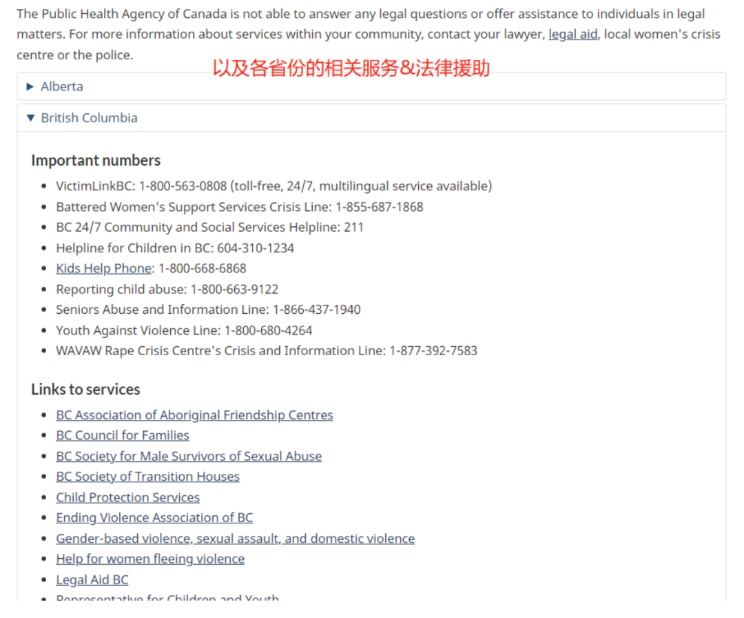 补充一点:搜“Public Health,Health Promotion,Stop Family Violence Service”,也能够找到相关援助机构,以及法律服务。