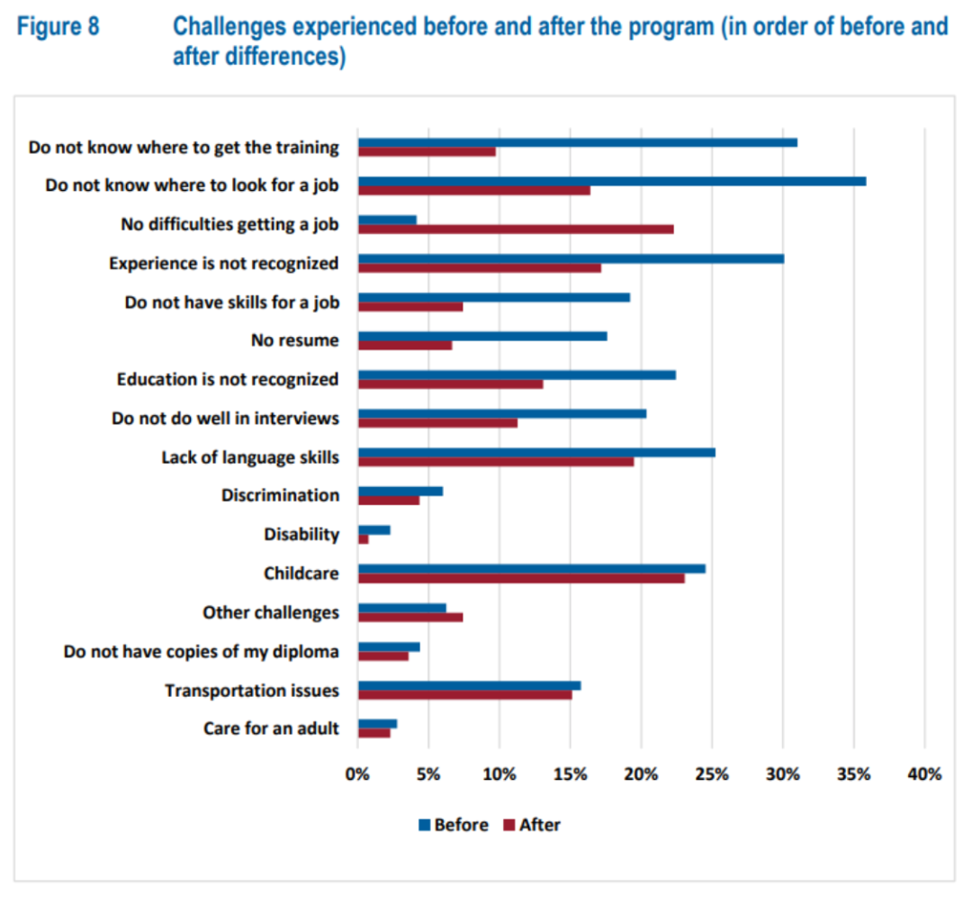 这个项目前身叫Visible Minority Newcome Women Pilot(VMNW),2018年建立。在过去3年,移民局已经投入3千多万加币了。而2021项目报告也显示,该项目成功改善了少数族裔的新移民女性面临的困难,尤其是在职业发展方面,该项目也得到了参与者的广泛好评和推荐。