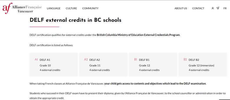 虽然DELF/DALF考试肯定不是那么容易的,但是它给我们带来的重大利好非常值得我们去为它好好地拼一把!下图是DELF/DALF官网上给出的权威信息显示:“DELF 认证有资格获得BC省教育部外部证书计划下的额外学分。” 这意味着如果通过