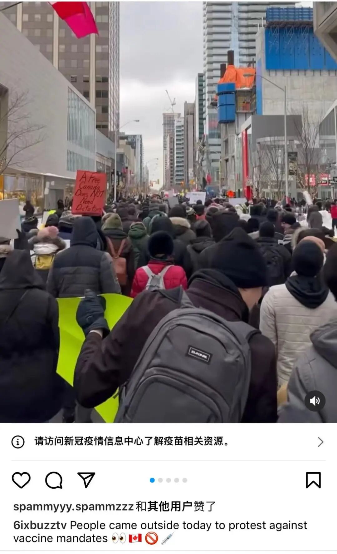 昨天上午,多伦多市中心爆发大规模反强制疫苗的游行,现场参与、围观游行人数超千人!