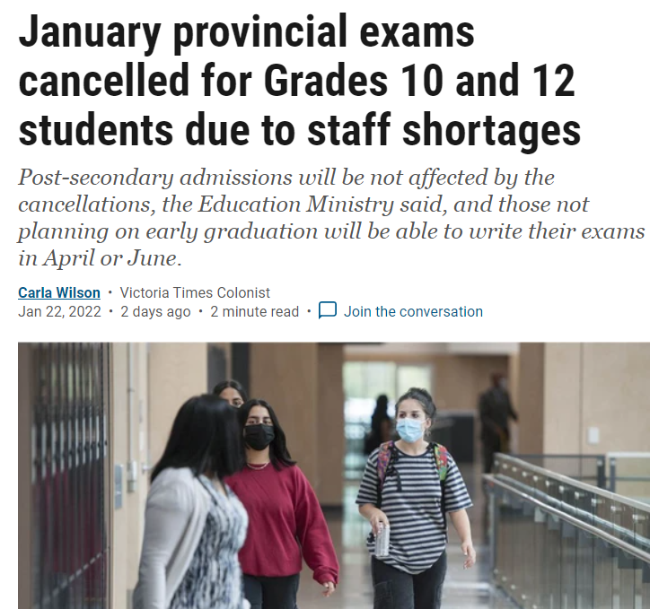 【加拿大乐活网lahoo.ca EVA WANG报道】由于人手短缺,BC 省正在取消原定于 1 月对 10 年级和 12 年级进行的省考。
