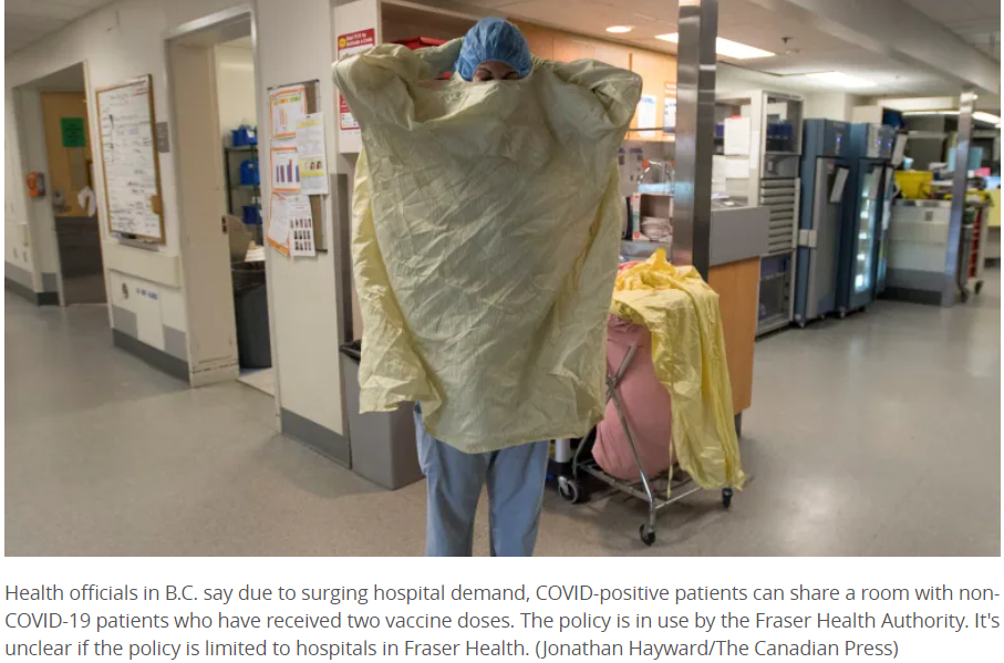 BC 省由于住院人数创历史新高,患有 COVID-19 的患者与已经接种双重疫苗的未感染患者将被安排在同一间病房之中。