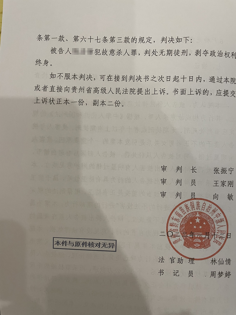贵州丹寨教科局原书记被杀案宣判,被告人一审被判处无期徒刑。 受访者 供图