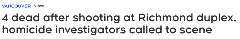 【加拿大乐活网lahoo.ca Felicia编写】1月25日夜里,大温地区华人聚居的城市列治文,发生了一起性质恶劣的重大枪击案,4人被杀。