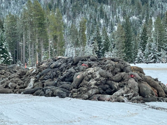 一名匿名摄影师在 Similkameen 河附近拍摄大量的猪尸,照片随后由社区媒体 Castanet 发布。(图自:Castanet)