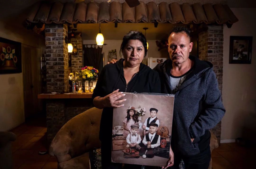 坐在 minivan中Erlinda Zacarias一家(下图),四个孩子全部遇难!包括(从左到右)15岁的 Bryan Axel Zacarias(站在他父亲旁边);13岁的Lluvia Daylenn Zacarias;10岁的Adrian Zacarias和5岁的 Fernando Yeshua Mejia。他们的父母因为当时不在车上而幸免于难。