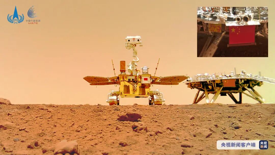 今天,天问一号探测器、五星红旗与北京冬奥会和冬残奥会会徽又一次同框自拍。