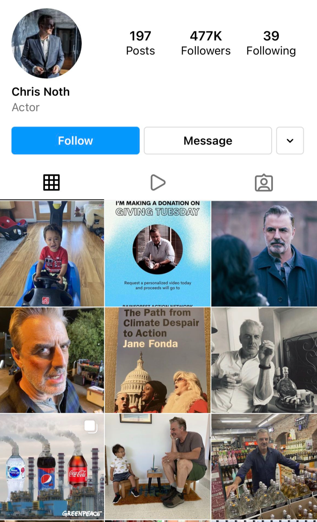 在剧中 Mr.Big 是金融高管,高大威猛潇洒多金,而演员本人出生在衣食无忧的家庭中。他母亲在 CBS 新闻台工作,是当年为数不多的女性谈话类节目主持人之一,父亲是一家营销公司副总和保险代理。Chris 还有两个哥哥,颇受宠爱。然而在他 11 岁时,父亲发生车祸不幸身亡。