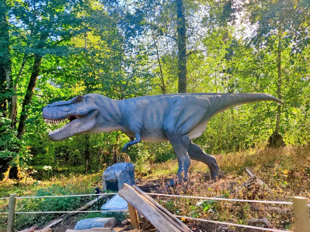 走到鳄鱼馆向右转进入小路,一路上能看见马和鹿,途中还会经过灰熊馆,最后在离园前的必经之路上就能看见恐龙馆了。