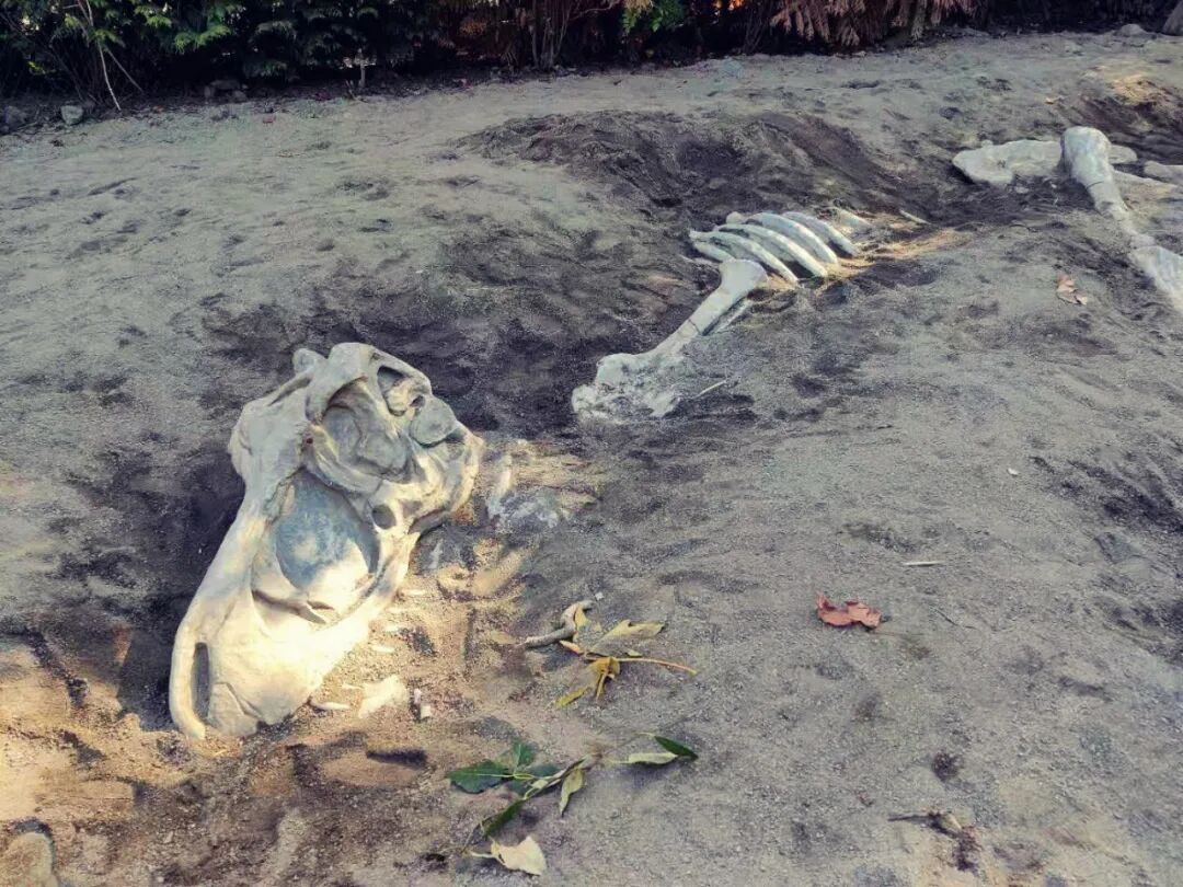 恐龙馆的对面就是灰狼馆,前面有一块空地,里面埋藏着仿真的恐龙化石,孩子可以模仿考古学家去挖掘这些宝藏。