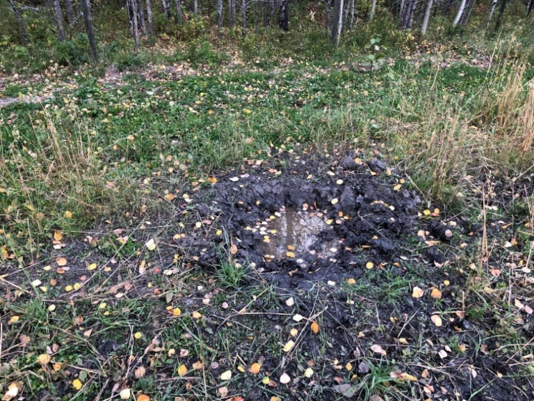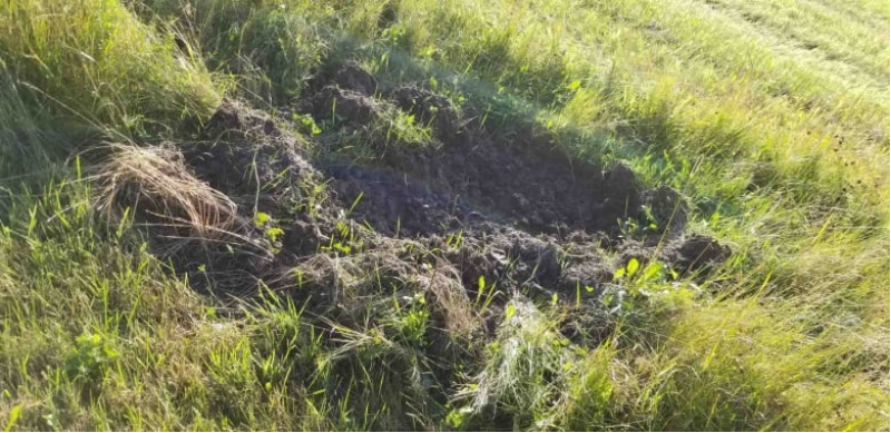 这个小泥坑是这个地区有野猪的迹象(图源:Alberta Invasive Species Council)