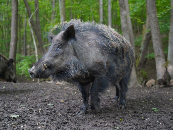 这些野猪的体重可达600磅或更多,长着锋利的獠牙,身上覆盖着厚厚的皮毛。