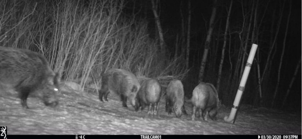 由野生动物摄像机记录下的野猪(图源:Ryan Brook, University of Saskatchewan/The Canadian Press)