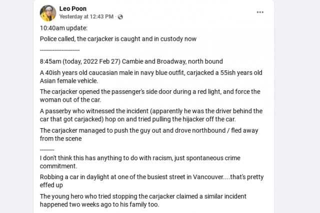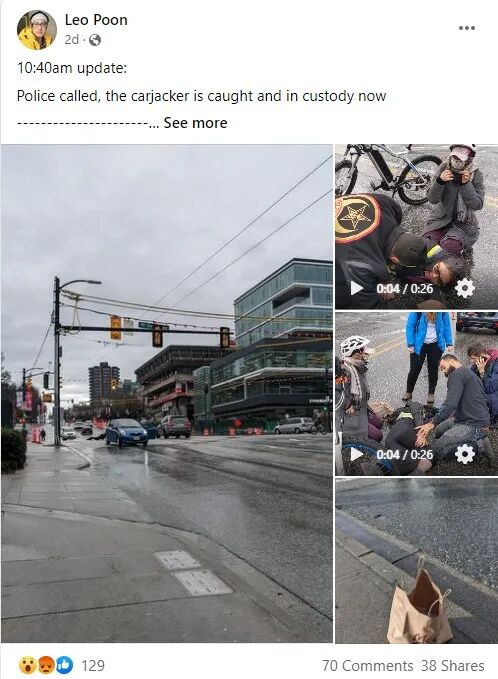 华人潘先生(音译,Leo Poon)作为这一幕的目击者,当场拍下了事发经过,并发布到网上,透露出有关这起劫车案的更多信息。