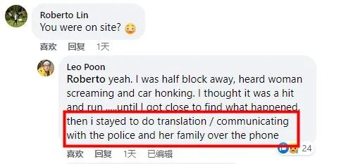 潘先生随后在评论中追加表示,他当时还留在现场帮女子进行翻译,并联络了她的家人。根据描述,这名受害者也是一名华人。