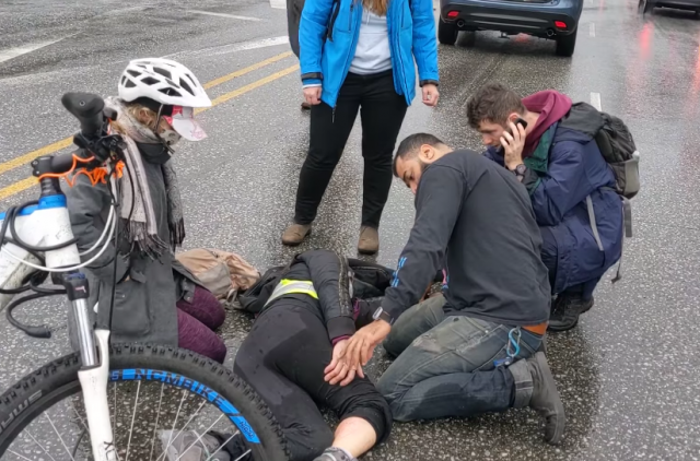 “我差不多距离事发地半个街区远,我能听见女子的尖叫声,还有汽车喇叭的轰鸣声,” 潘先生说道。“我一开始以为是肇事逃逸事件,直到我走近才知道发生了什么事。”