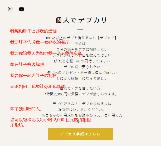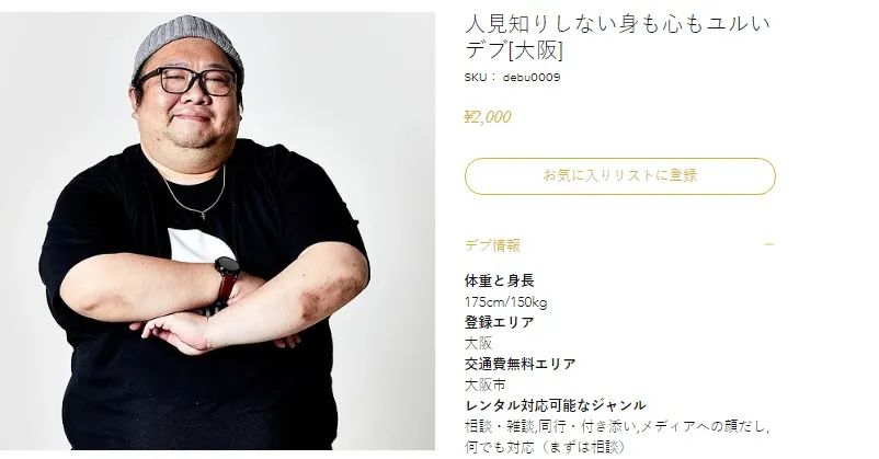 日本人一直热衷于对人员的租赁,从中年的男性到已婚的良家,再到现在的胖胖…人尽其用,日本的人类共享服务基本上已经涵盖了每一种年龄与体型。