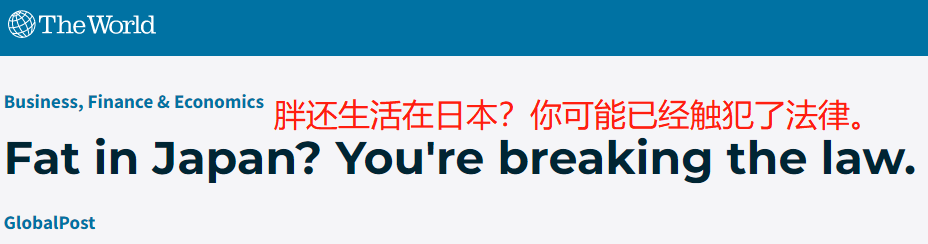 在2010年前后,日本甚至颁布了一条“代谢法”,旨在规训本土人民保持苗条的身形。一旦作为男性的腰围超过了85厘米,你就不得不被迫的接受政府规定的咨询理疗。
