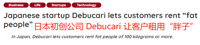 创立于东京的德布卡里公司提出的一项新服务就是允许公司和个人以每小时2000日元,相当于109元人民币的价格出租“胖子”。