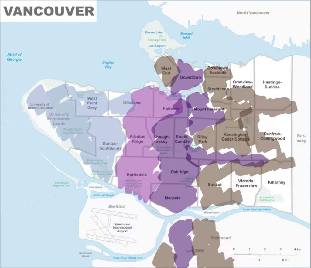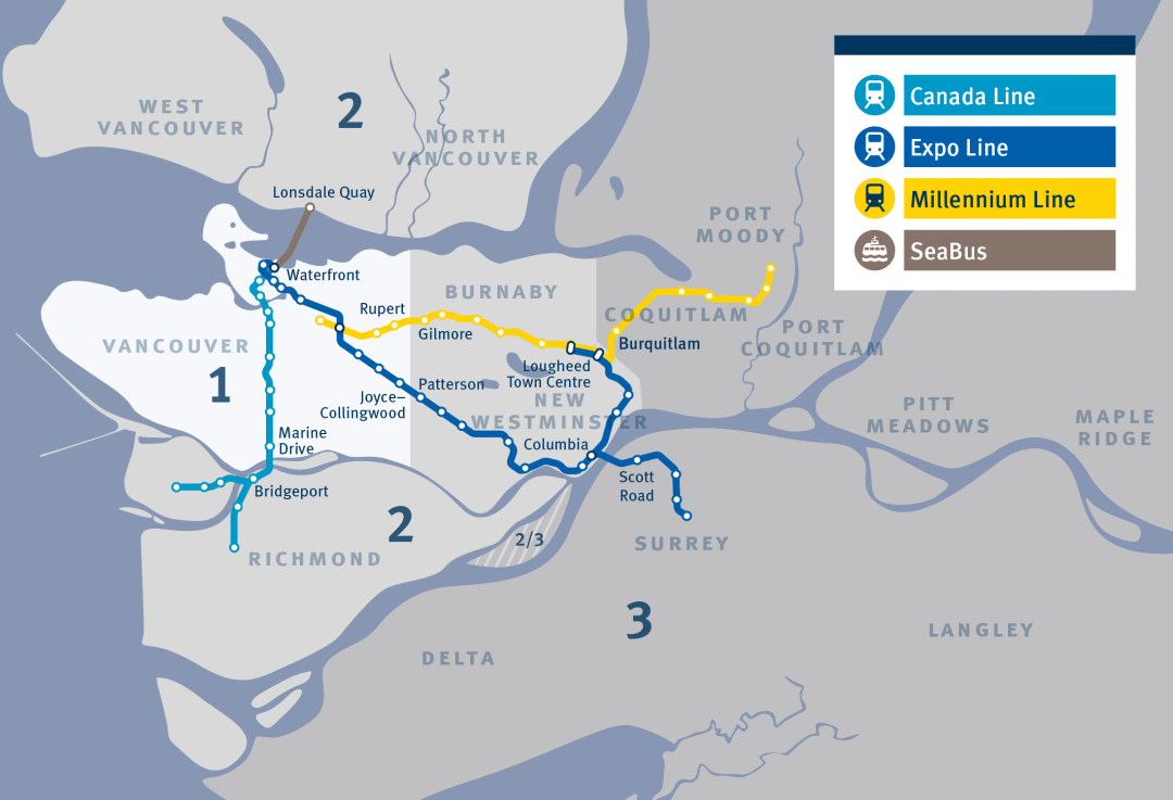 大温地区,目前通了天车的城市有:Vancouver,Richmond,Burnaby,Coquitlam,Surrey