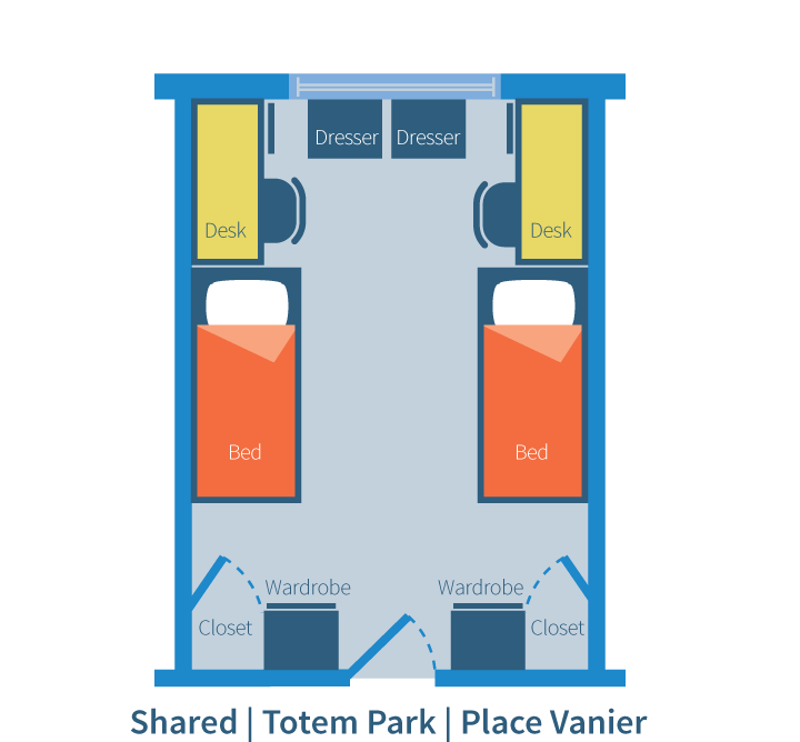 随后,我又分到了分到了合租宿舍Shared Double,个10平房间,两张床对着放的两人间。