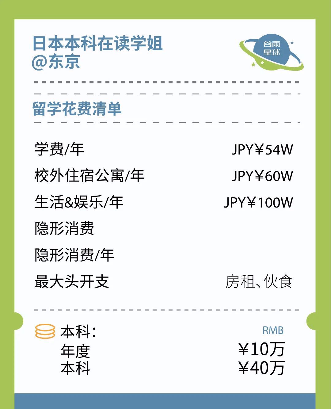 ????在学费之外,大头还有生活费,也千万不要忽视一些隐形费用。