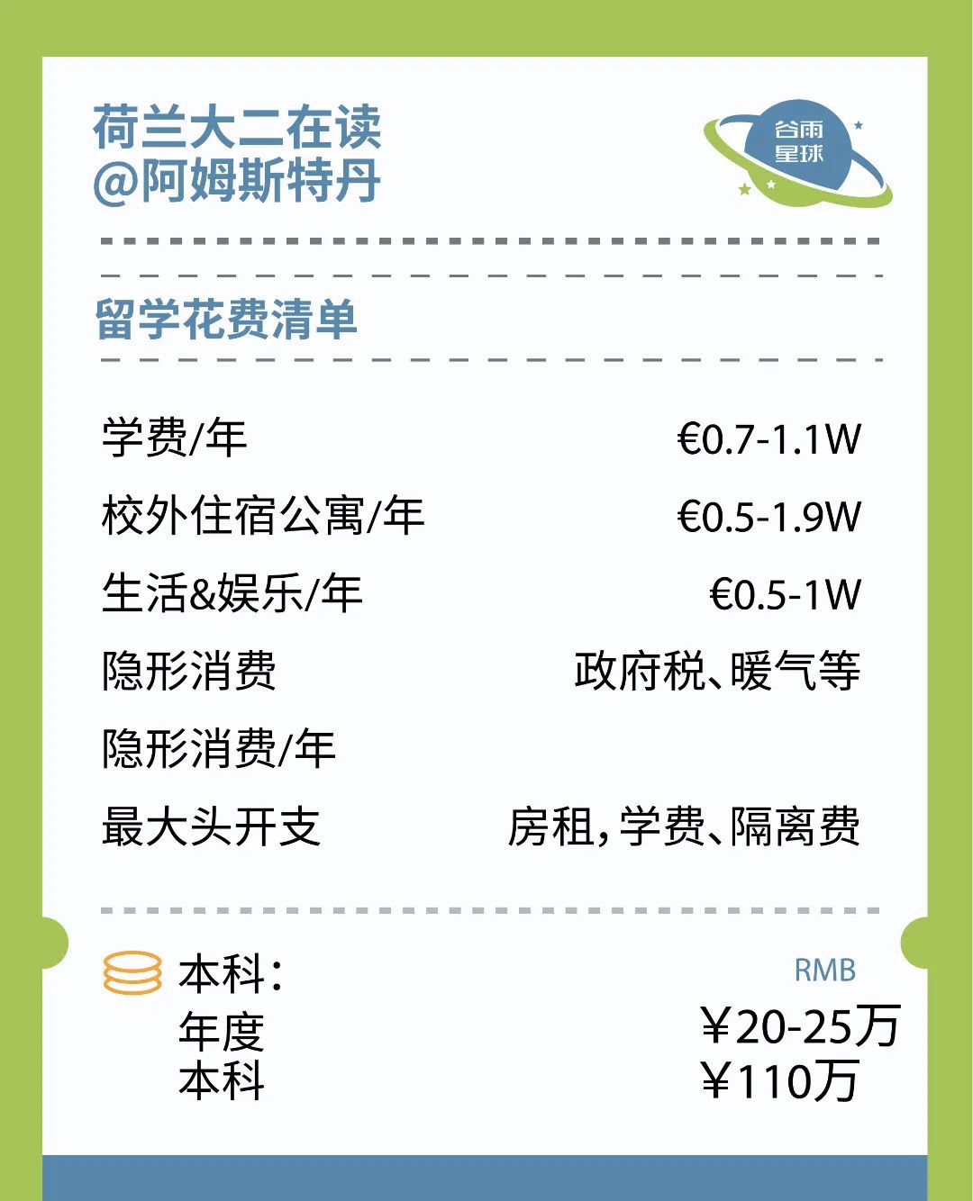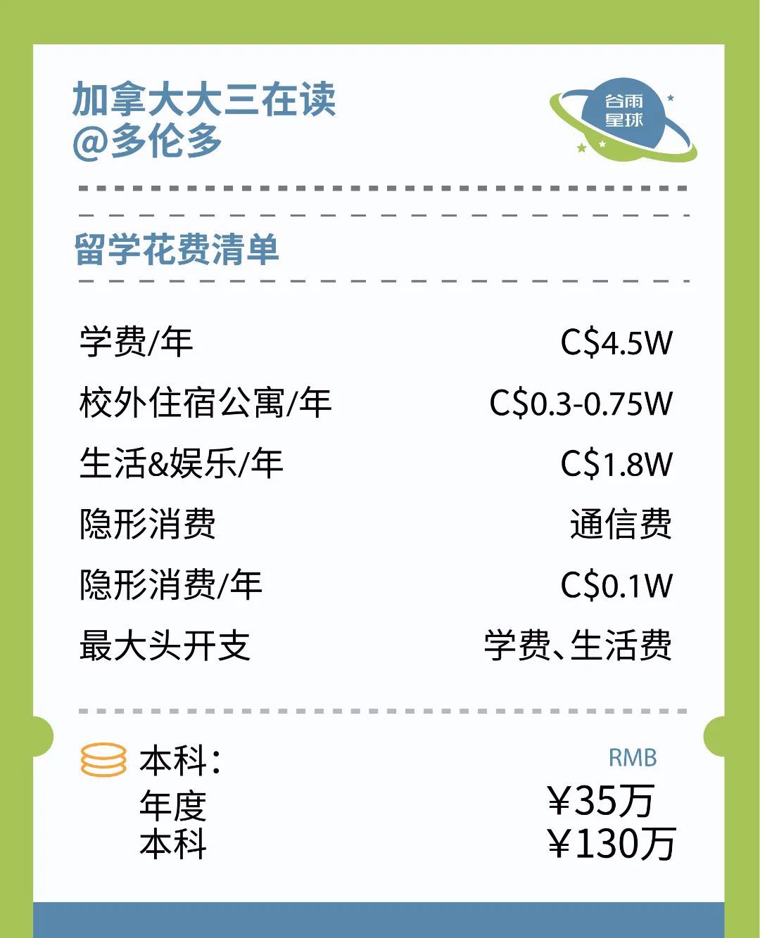 为此,「谷雨星球」找来了身边在国外读大学的学生,收集了他们真实的反馈,并记录了下来,一手数据,更有代表性!