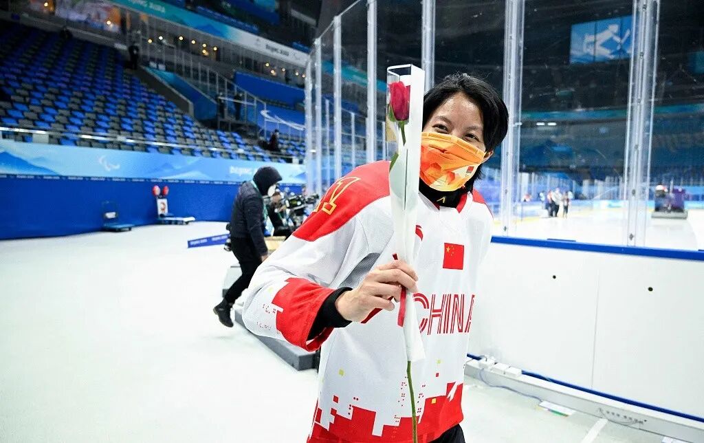 2020年,为了能有机会在参加北京冬残奥会,36岁的她辞去了工作,转型成了一名专职的冰球运动员。