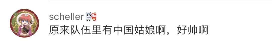 因此有网友恍然大悟,“原来队伍里有中国姑娘啊,好帅啊”;“以为有女运动员是基础,没想到只有我们有,了不起!”
