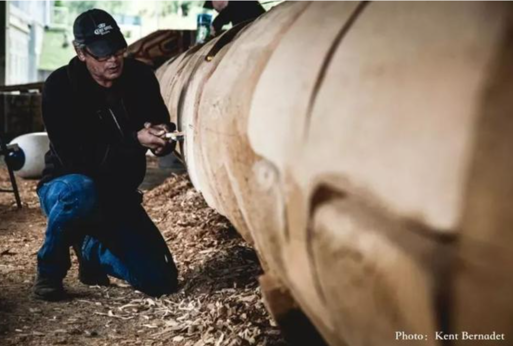 ▲当地的海达族艺术家在雕刻本民族的图腾柱