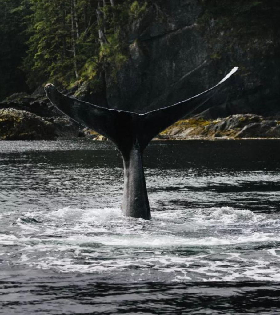 白头鹰在天空盘旋巡视;鲑鱼从海水中跳跃而出;座头鲸在海洋中潜行;海狮坐在岸边晒太阳,黑熊沿岸涉水捕猎。