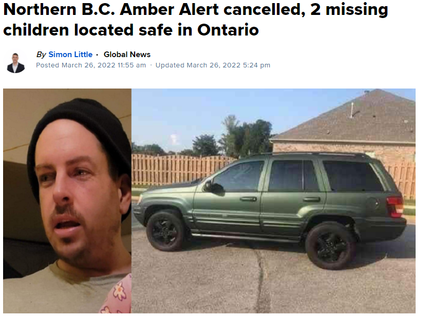 就在BC发布安珀警报不到4小时,就传来了好消息:安大略省警察局已经在Kenora找到了这辆车和四个人,嫌疑人驾车正准备从曼尼托巴以东进入安大略。