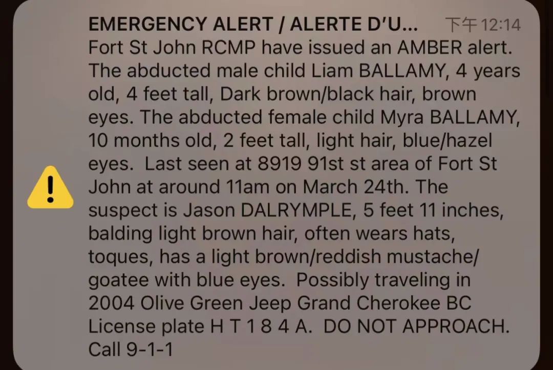 什么是安珀警报(AMBER ALERT)?很多华人在朋友圈表示“来加拿大十多年,第一次收到这种警报”,有必要普及一下知识: