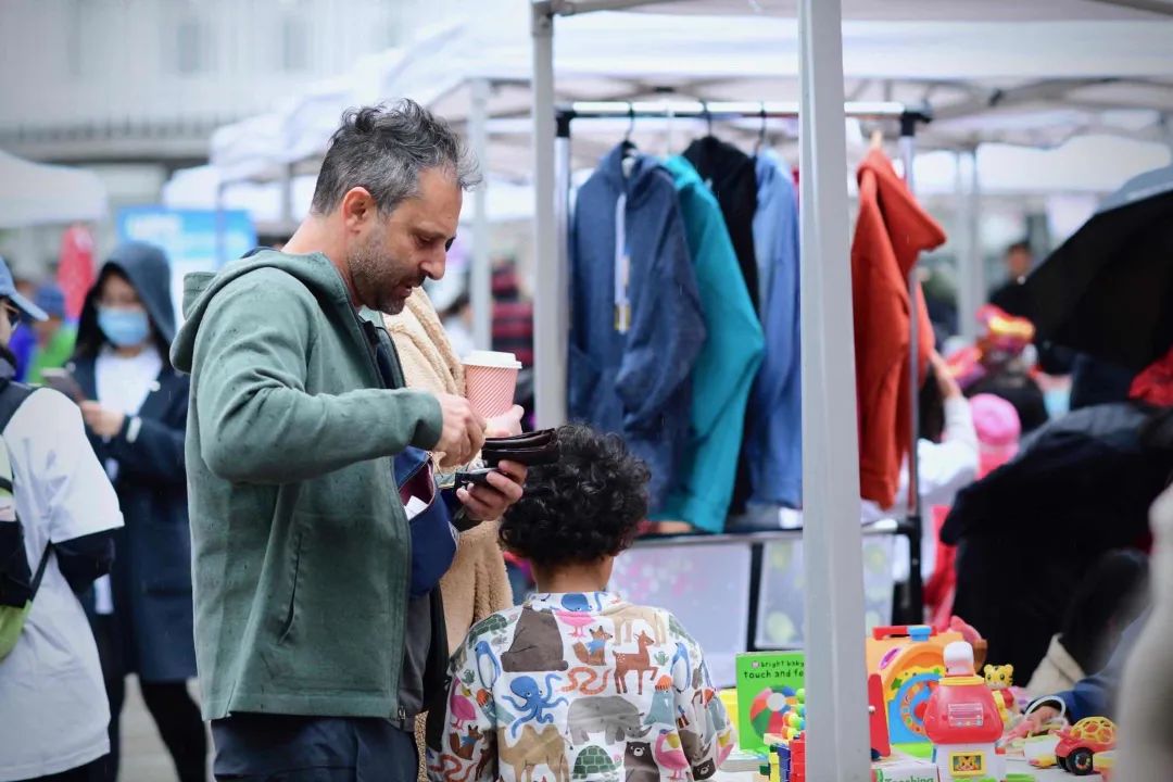 “爱心集市”热闹开市,引爆温哥华“赶集热潮”,广场各个区域摆满了整齐的桌子,上面摆放着大家精选的各式各样的闲置物品。