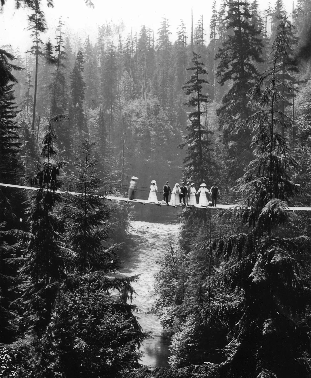 由于自己的土地横跨河两岸,为了方便往返通行, GEORGE·GRANT·MACKAY 用麻绳搭建起一条吊桥,这就是卡佩兰奴吊桥 (Capilano Suspension Bridge) 的前身。