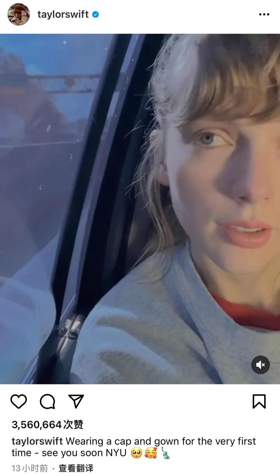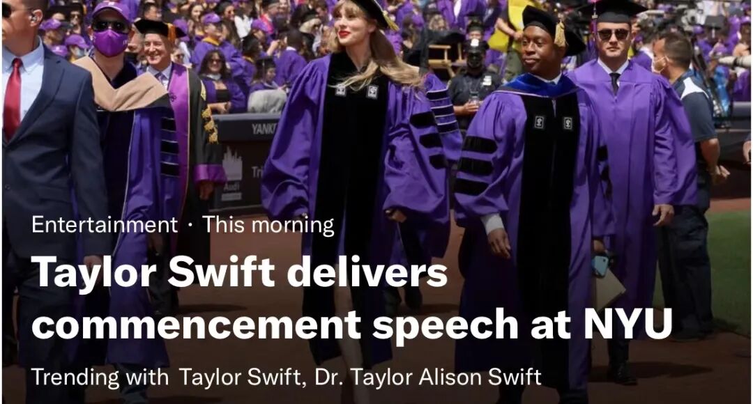 当地时间18日,霉霉被纽约大学授予艺术荣誉博士学位,以后请叫她霉霉博士!